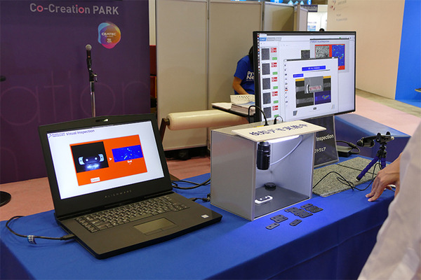 では今年、PFNは何を出展していたのか。2019年は、国内外のスタートアップ企業および海外諸機関のパビリオンを集めた「Co-Creation PARKエリア」で初日と最終日だけ、外観検査とビジョンピッキングのデモンストレーションをしていた。「お片づけロボット」ほど派手ではないが、昨年のCEATECの技術セミナーで発表され、うち一つは製品化されており、もう一つは製品化に向けて開発中のものだ。ここでレポートしておきたい。