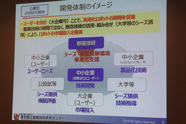 都産技研は中小企業とのサービスロボットの開発を2015年より行ってきた。34社と取り組みを行い、既に32社が完成し、実装の段階に入っているという。今回の国際ロボット展でその一部を展示する予定だ。