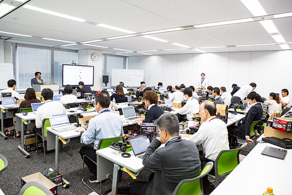 ほかの研修と比較して満足度が高いことと、実際に「楽しかった」という意見があってうれしいですね、朝一番で研修会場に来ると、自分のために用意された新品のラジコンカーが机の上に用意されている、これだけでもわくわくしますよね。また、組立から始まるので女性は苦手かなと思ったら、女性の方がむしろ丁寧にきれいに組み立てていますね。みなさん楽しそうにJetson Nanoやカメラの組立てを行っています。