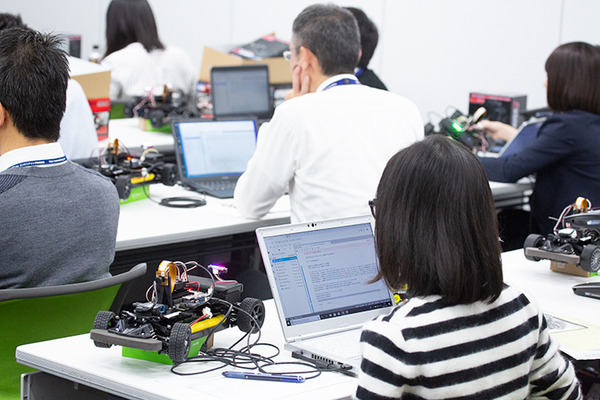 内容は午前中、AIレースカーの組み立てから始まる。組み立てやすいようにあらかじめある程度組んだものが用意されているものの、ラジコンカーの組み立てを初めて体験する人もほとんど。自身で組みあげたときの満足感は大きい。