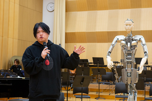 「オルタ3」はAIや疑似的な神経細胞を持ち、オーケストラを指揮するために開発されたアンドロイド。「オルタ3」の動きをより洗練させていくためには、オーケストラを指揮する機会を増やし、オーケストラの合奏体としての関わり方を継続して研究・実験していく必要性を感じ、それに国立音楽大学の板倉客員教授が賛同し、今回の発表に至った。