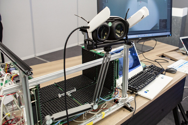 超音波による触覚技術自体には特別なデバイスの装着は不要だ。器具の装着なしのためユーザ負担の低い触覚技術として注目される(ゴーグルはリアル感を演出するために視覚を補助的に使用していると思われる)。